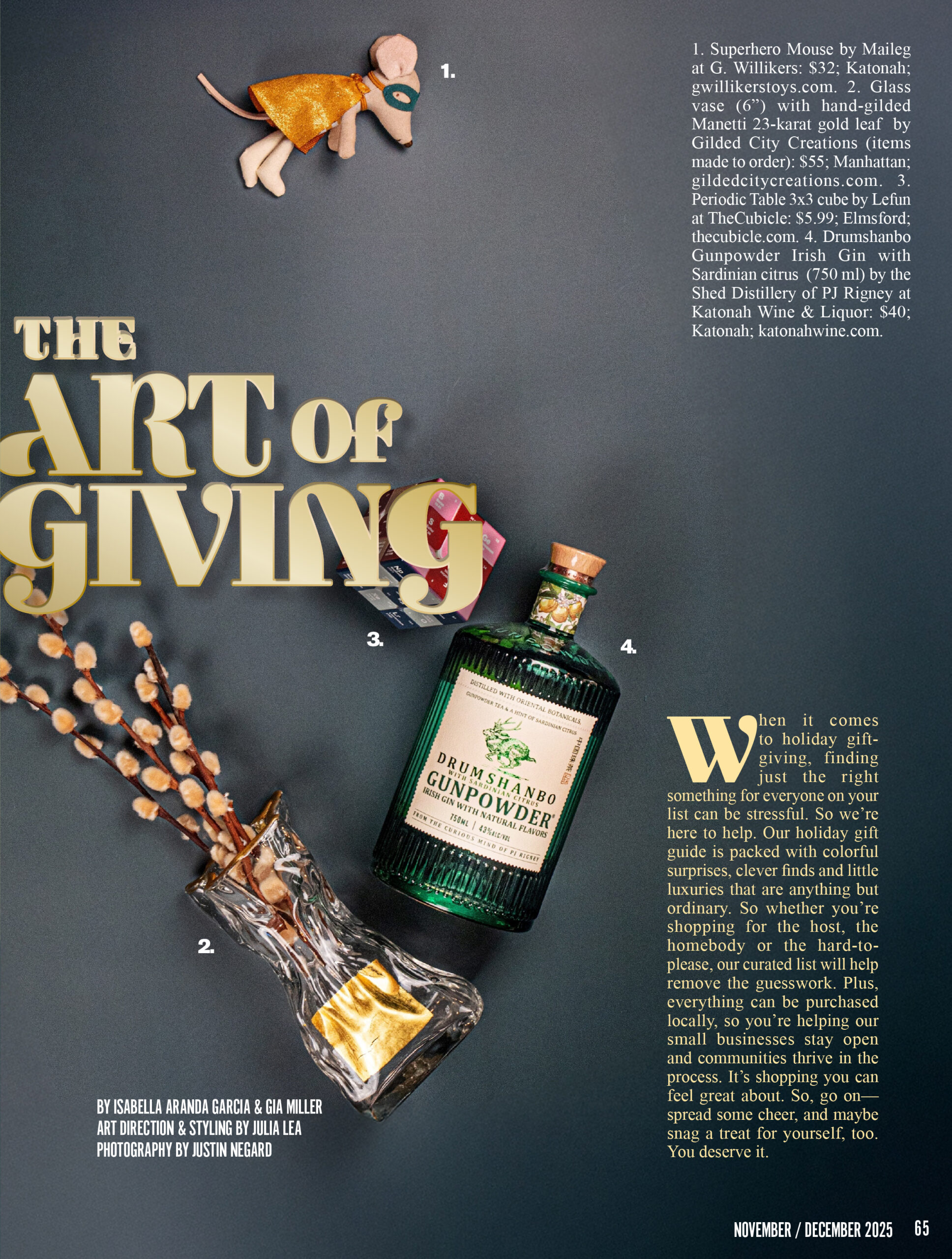 When it comes to holiday gift-giving, finding just the right something for everyone on your list can be stressful. So we’re here to help. Our holiday gift guide is packed with colorful surprises, clever finds and little luxuries that are anything but ordinary. So whether you’re shopping for the host, the homebody or the hard-to-please, our curated list will help remove the guesswork. Plus, everything can be purchased locally, so you’re helping our small businesses stay open and communities thrive in the process. It’s shopping you can feel great about. So, go on—spread some cheer, and maybe snag a treat for yourself, too. You deserve it.