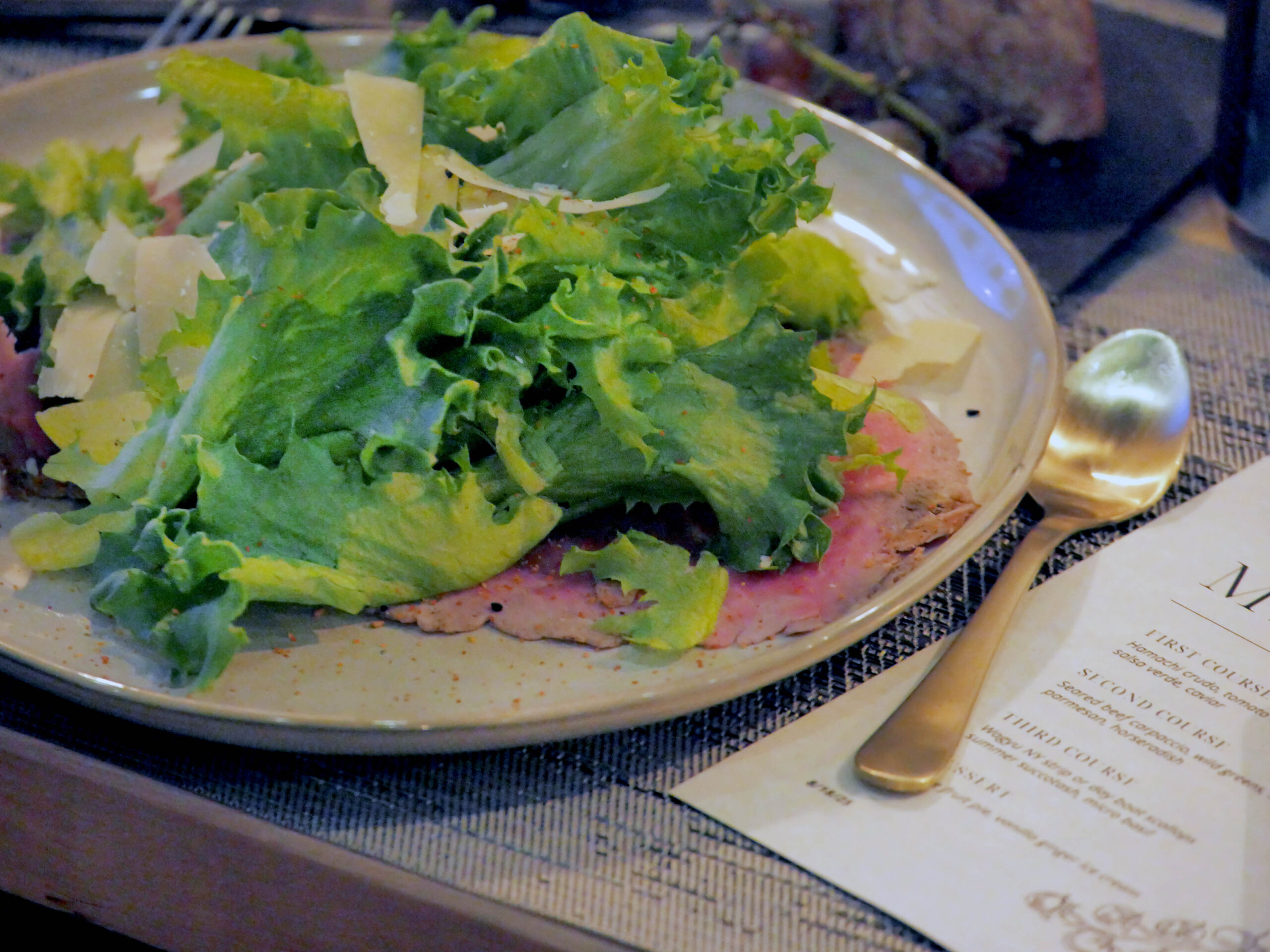 “I hope you enjoy the sweetness of the lettuces, the purity of the beef, the saltiness of the cheese, a little bit of acid from the charred lime vinaigrette and the little tiny bit of shichimi spice that’s in there, too.” —Gary King