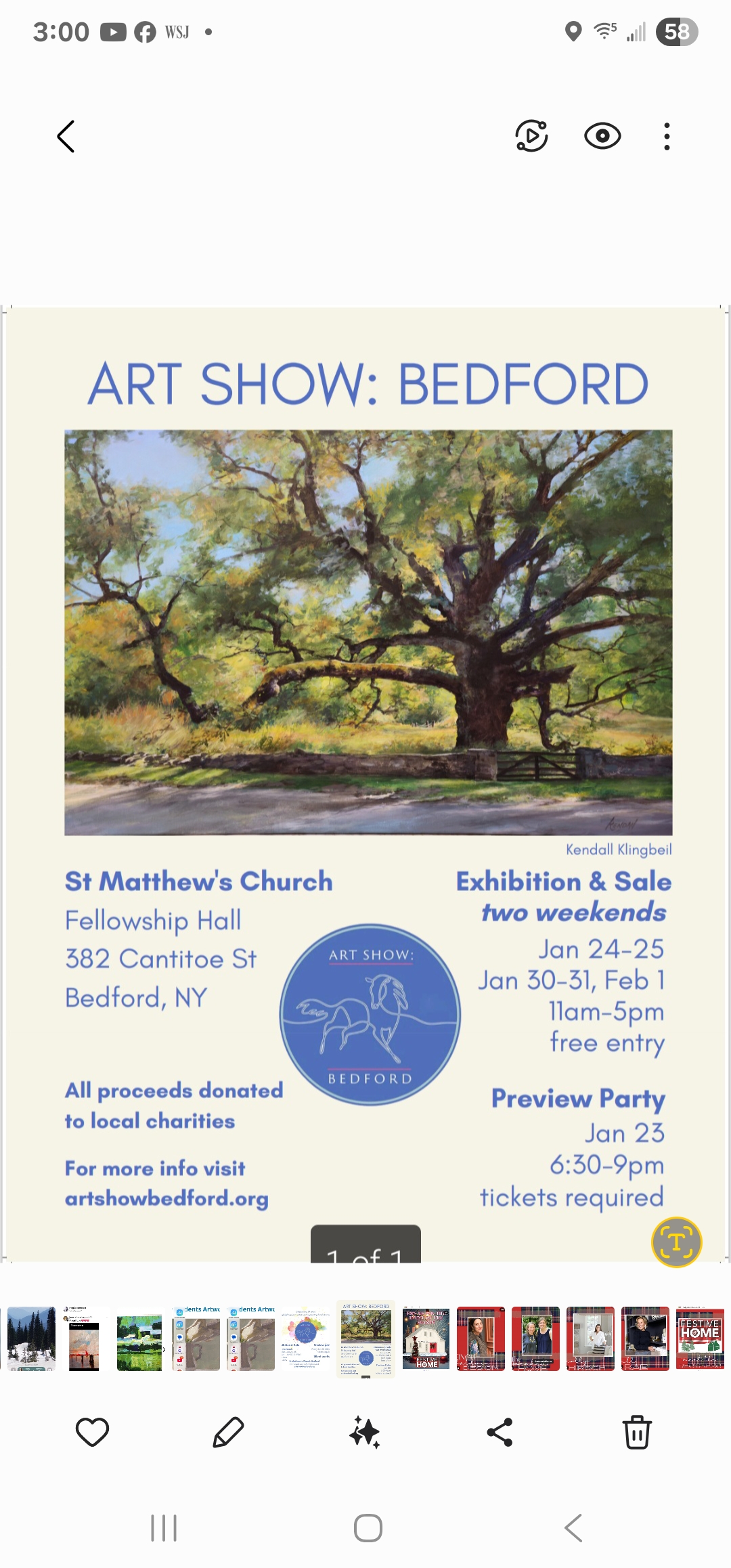 Date Jan 23 2026 - Feb 01 2026 TimeWeekends Fri & Sat 11 am to 5pm 6:30 pm - 5:00 pm ART SHOW BEDFORD 2026 St Matthew’s Church 382 Cantitoe St Bedford, NY 10506 Share this event + Add to Google Calendar + iCal / Outlook export Location Yellow Studio 792 Route 35, Cross River, New York 10518 00 days 00 hours 00 minutes 00 seconds Locations Yellow Studio 792 Route 35, Cross River, New York 10518 Share this event