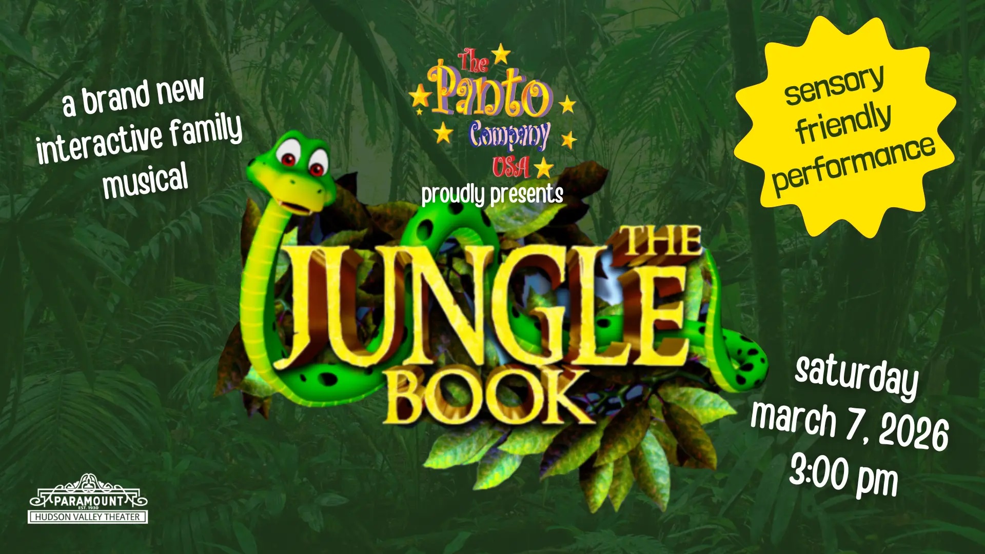 As part of their 10th season of bringing outstanding programming to tour in the US, The Panto Company USA is thrilled to bring the cherished, family favorite story, “The Jungle Book”, to life on stage. In this fully produced musical production, done in true Panto Company style, they bring to life Kipling’s tales with great scenery, cool costumes, full of original modern songs, bursting with more excitement than you can imagine and of course a happy ending. Join Mowgli and all his pals for an adventure of learning, growth and fun in this all-new production!