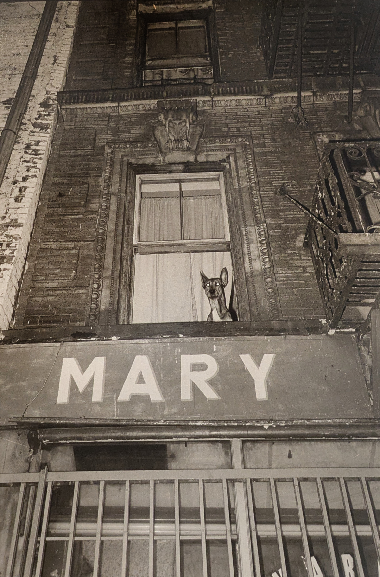 - Photograph of dog looking out of the window.