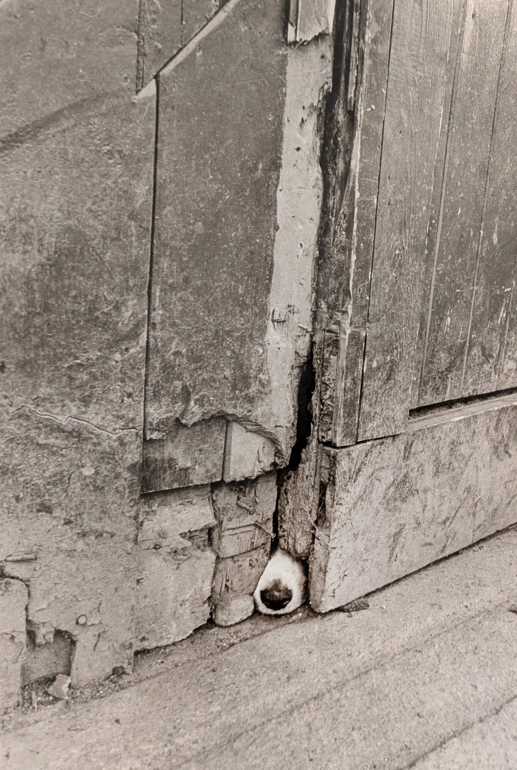 - Photograph of a dog’s snout poking out of a crevice.