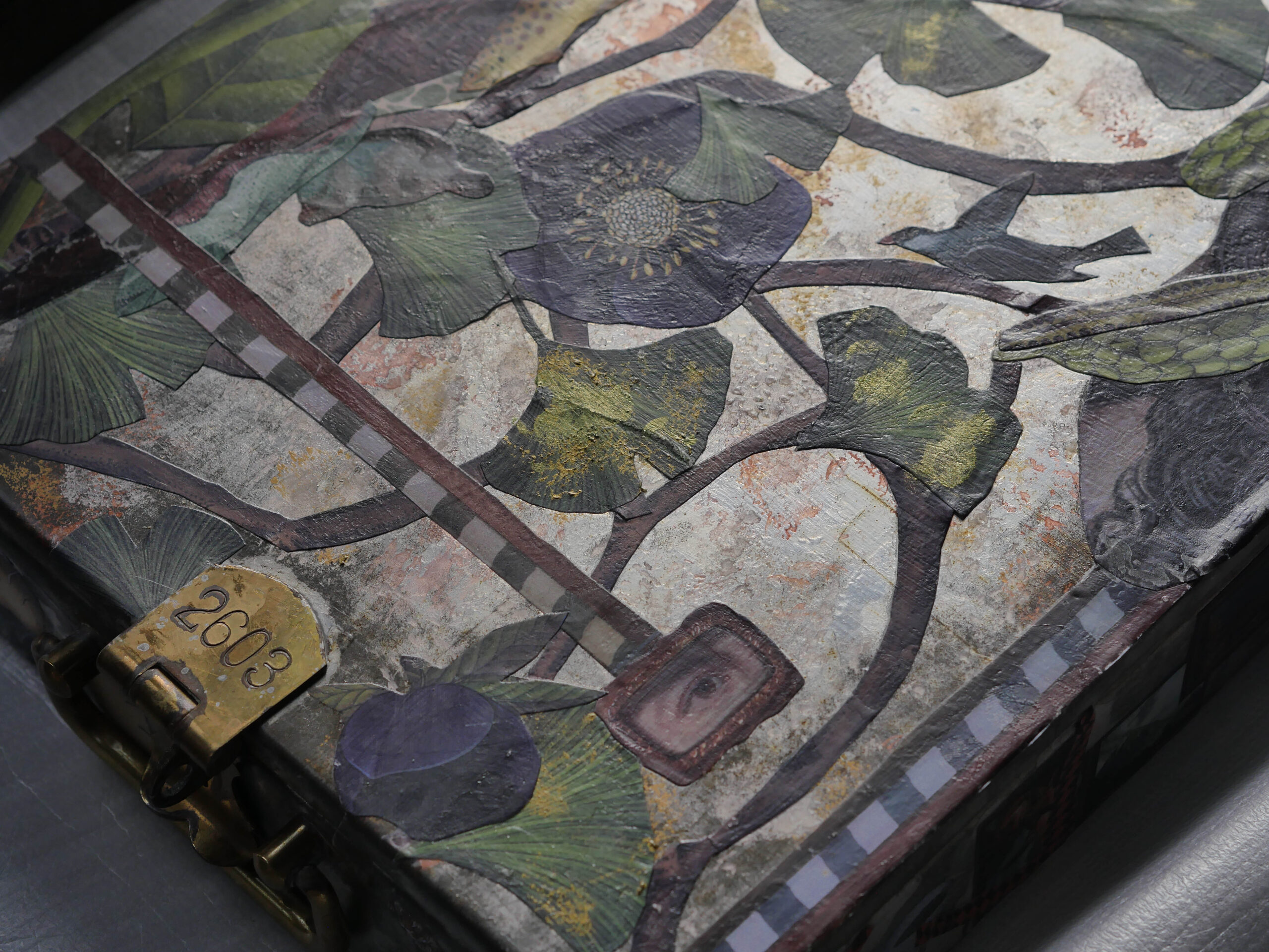 When it’s time to decoupage a new object, Zinman says she looks through the collection of things she has gathered and reaches for the piece that inspires her at that moment. Presently, Zinman has a fascination with vintage biscuit tins. “I like creating little fantasy worlds inside them,” Zinman says. “And I will add free-standing decoupage objects inside to create a cabinet of curiosity.”