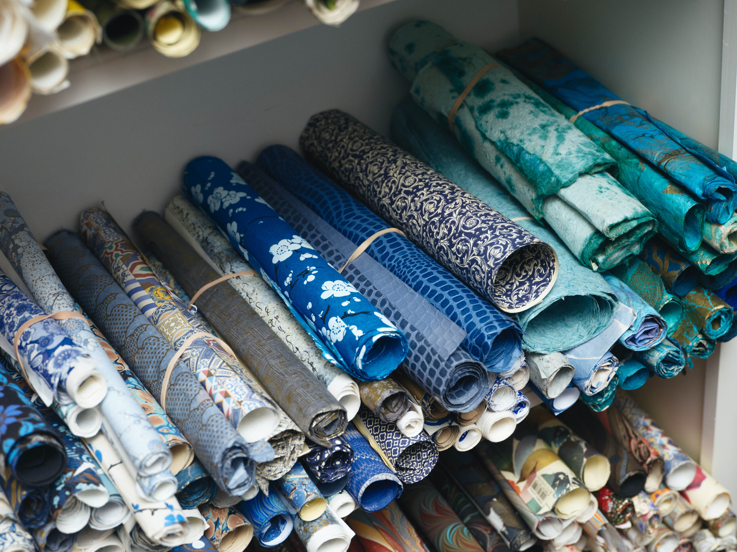 Once the object and images are selected, Zinman heads to her three shelves filled with decoupage paper, mostly from a company called Mulberry Papers, which makes hand-crafted, colorful papers featuring portraits, florals, sea life, architecture, zodiac signs and more. Then, Zinman begins to cut, using a combination of cuticle scissors, small Fiskars scissors and knives with small blades. This process, she says, is very intense and requires precision. “I sometimes have a lot of trouble focusing,” Zinman says. “But when I am cutting, I go into a meditative and relaxing state, where my brain is in a Zen mode.” Finally, it’s time to glue the images, a step that Zinman says cannot be rushed. This phase must be done flawlessly, and the glue can take anywhere from 24 to 36 hours to dry properly before a protective treatment can be applied. As she’s creating these pieces, Zinman keeps herself organized using three different trollies: one for works in progress, another for finished pieces and a third for the final cleanup stage.